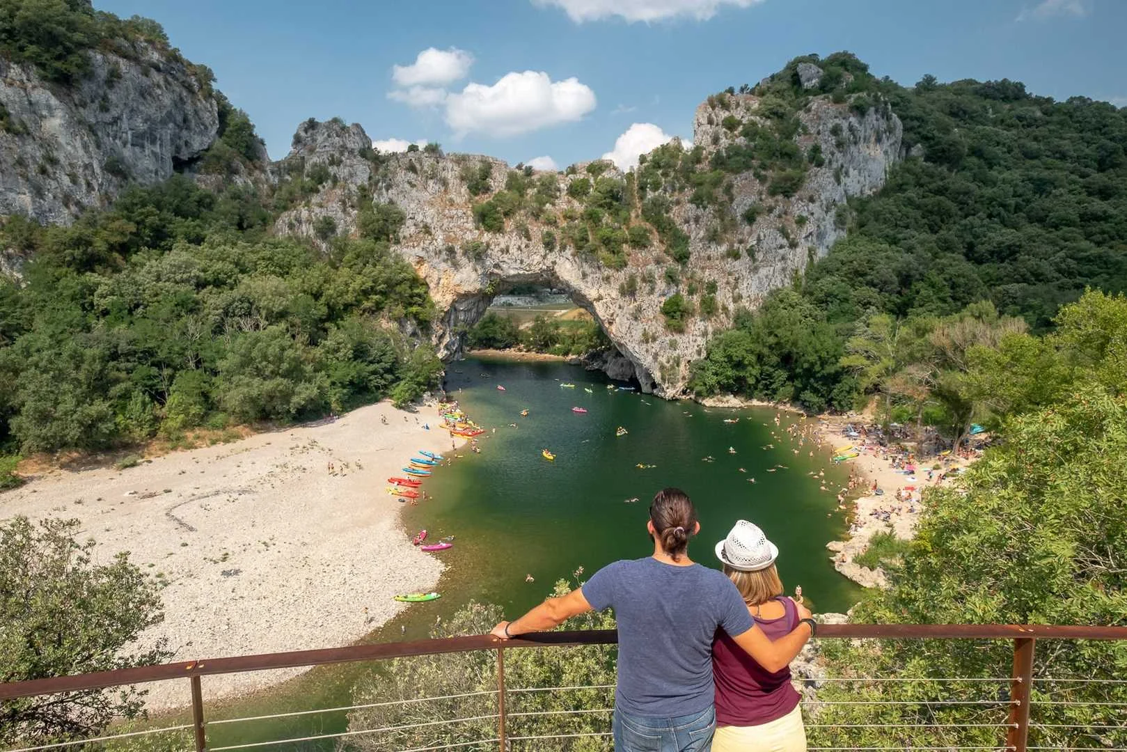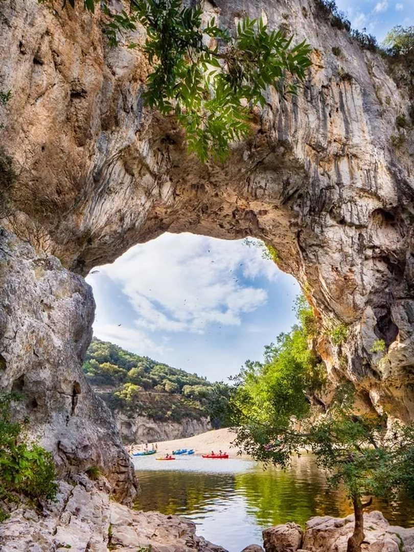 Pas de vacances en Ardèche sans un tour au Pont d’Arc ! Cette curiosité géologique vaut vraiment le coup d’œil. Haute de 54 m, large de 60 m, cette arche naturelle est datée d’au moins 500 000 ans.