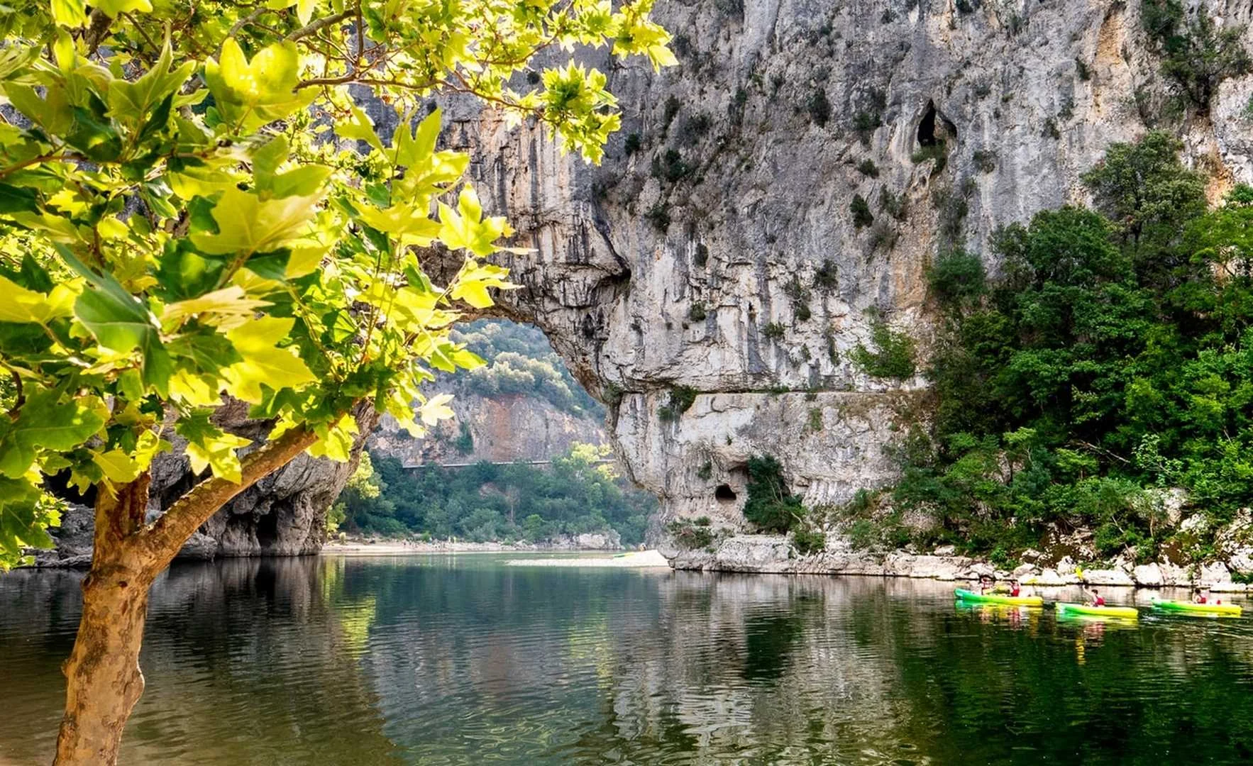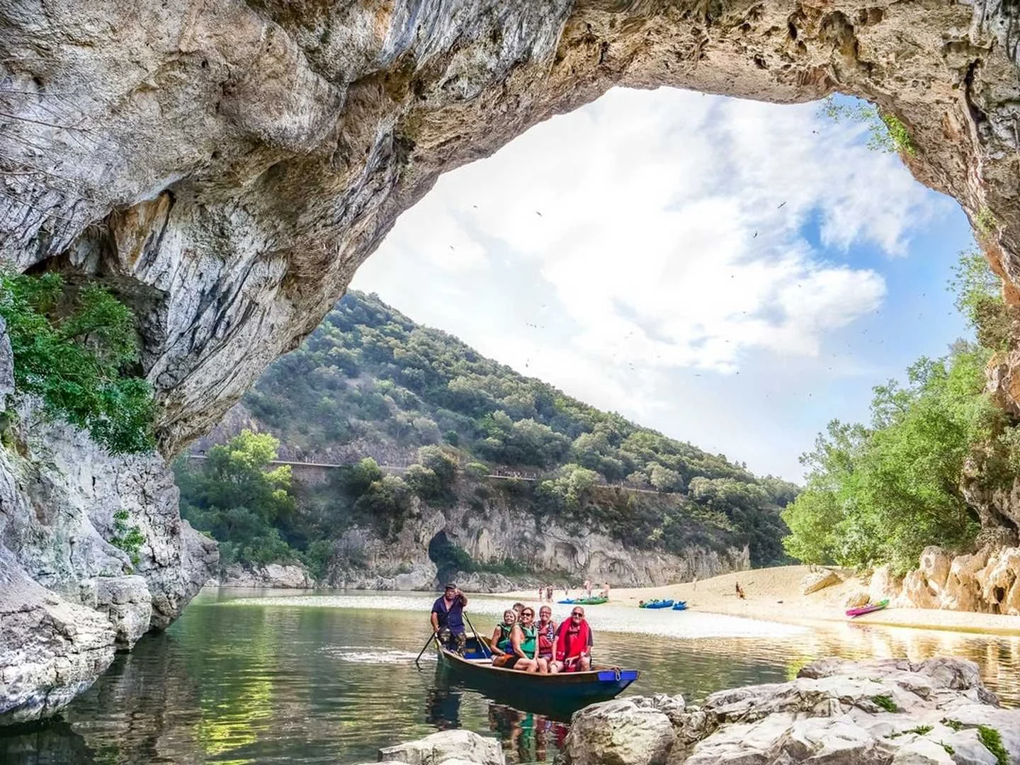Sous le Pont d’Arc, on peut également y passer en canoë, pour un petit parcours de 6 km environ, ou pour une descente plus sportive si vous vous embarquez dans la traversée des Gorges de l’Ardèche.